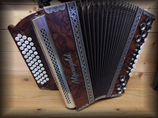 3-chörig mit 5 Register, 48 Diskantknöpfe,