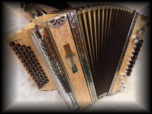 3-chörig mit 5 Register, 48 Diskantknöpfe,